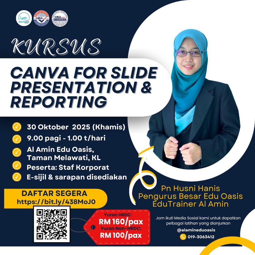 Al Amin Edu Oasis Sdn Bhd (EduOasis) is a wholly-owned subsidiary of Pusat Pendidikan Al Amin Berhad (PPAAB), established on 20 June 2013. It is a registered Training Provider under the Human Resource Development Corporation (HRDC) and Ministry of Finance (MoF) under e-Perolehan.